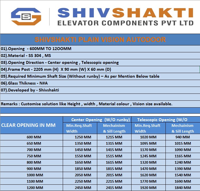 Everything is under one roof for elevator needs and impressed by its own shivshakti make auto doors.